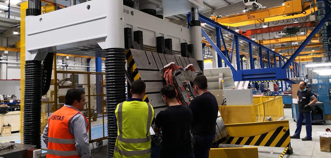 一體化壓鑄成型技術(shù)應(yīng)用與推廣乃大勢所趨。越來越多整車及汽車零部件廠商正在研制一體化壓鑄零部件,隨之而來的超大型壓鑄機(jī)的模具越來越大(重),有些模具重量甚至達(dá)到200T。在壓鑄模具開發(fā)和制造過程中,需要使用一種設(shè)備,即模具研配試驗(yàn)壓力機(jī)(合模機(jī)),用于模具的研配和校正。
